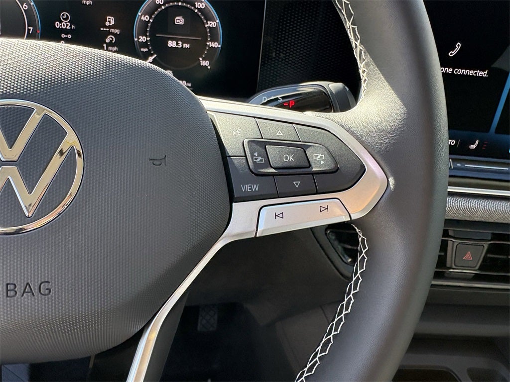 • MIB4 Composition Media Touchscreen w/AM/FM Radio -inc: WMA/MP3/FLAC player w/USB, 12.9" touchscreen multi-function center display w/backlit sliders, voice control, 6 speakers + center speaker (7 speakers total) sound system, capability for in-vehicle 4G LTE enabled Wi-Fi (cellular data plan required; includes limited trial), capability for connected vehicle services (capabilities for services vary; requires enrollment or subscription), Bluetooth® connectivity (for compatible devices), SiriusXM w/360L (w/3-month free trial subscription; 360L services require acceptance of Car-Net terms), App-Connect smartphone integration (w/Apple CarPlay, Android Auto and MirrorLink) via USB, wireless App-Connect smartphone integration (for compatible devices) w/multi-phone pairing capability, 45W fast charging (for compatible mobile phones and accessories) via USB in both rows and Qi wireless inductive charger, cooled, up to 15W (for compatible mobile phones and accessories) All connected vehicle services are subject to terms and limitations. Some services require a paid subscription. See dealer or vw.com/connected for important details.