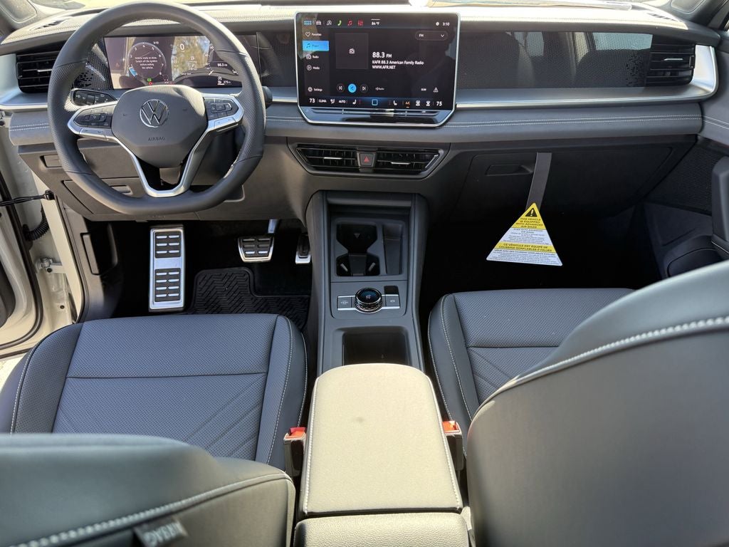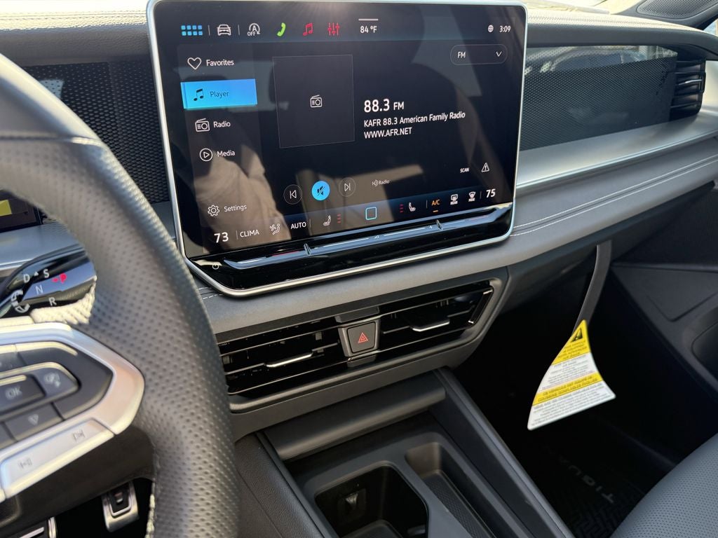- MIB4 Composition Media Touchscreen w/AM/FM Radio -inc: WMA/MP3/FLAC player w/USB, 12.9" touchscreen multi-function center display w/backlit sliders, voice control, 6 speakers + center speaker (7 speakers total) sound system, capability for in-vehicle 4G LTE enabled Wi-Fi (cellular data plan required; includes limited trial), capability for connected vehicle services (capabilities for services vary; requires enrollment or subscription), Bluetooth® connectivity (for compatible devices), SiriusXM w/360L (w/3-month free trial subscription; 360L services require acceptance of Car-Net terms), App-Connect smartphone integration (w/Apple CarPlay, Android Auto and MirrorLink) via USB, wireless App-Connect smartphone integration (for compatible devices) w/multi-phone pairing capability, 45W fast charging (for compatible mobile phones and accessories) via USB in both rows and Qi wireless inductive charger, cooled, up to 15W (for compatible mobile phones and accessories) All connected vehicle services are subject to terms and limitations. Some services require a paid subscription. See dealer or vw.com/connected for important details.